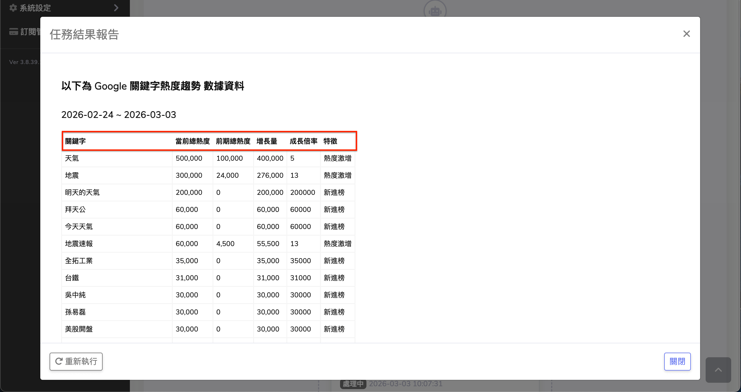 在任務中,Agent 會自動抓取關鍵字趨勢資料,並計算以下指標: