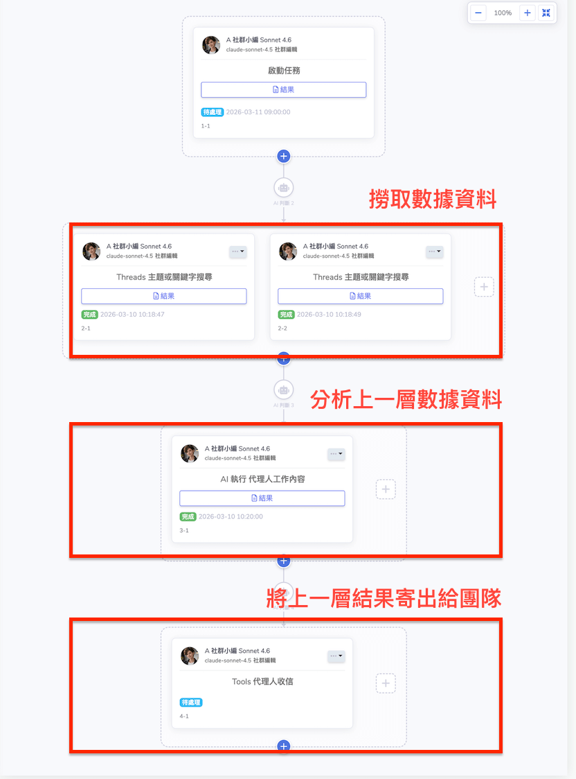 在這樣的設計中,角色分工與多 Agent 協作成為重要基礎,不同 Agent 各自負責特定任務,再透過協作完成整個流程,讓原本需要一次完成的複雜任務被拆解為多個可管理的步驟,這種設計方式讓 AI 的任務流程變得更清楚,也讓每個步驟更容易被檢視與調整